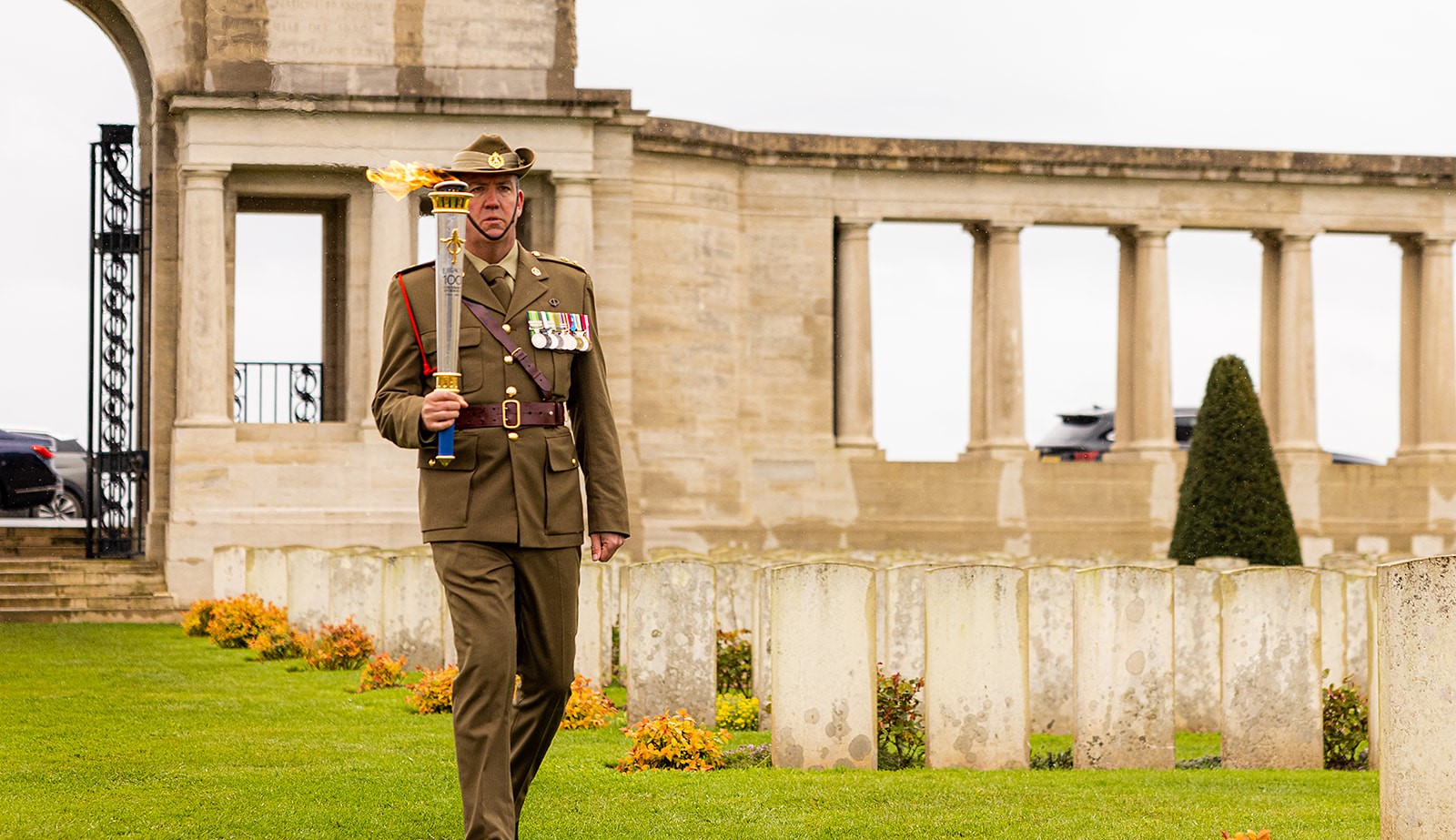 The Legacy flame has been lit at the official ceremony for the Legacy Centenary Torch Relay presented by Defence Health in Pozières, France.